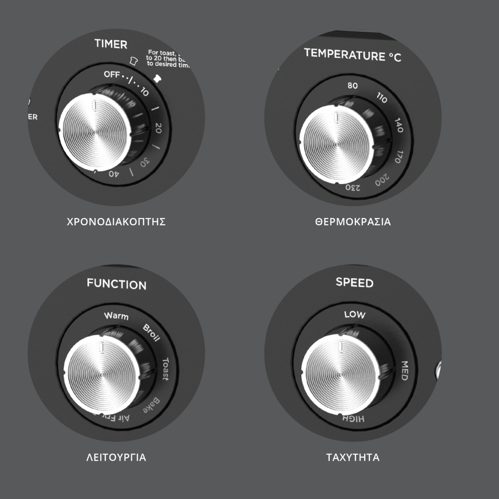 - Ιδανικό για να μαγειρεύει, τηγανίζει με ελάχιστο λάδι, ψήνει, σουβλίζει, ψήνει ψωμί & γλυκά, ξεπαγώνει κλπ