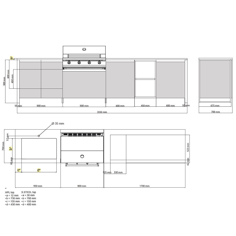 • Αν το μοντέλο της STEEL εξωτερικής κουζίνας GEA MARMOLADA είναι μικρότερο ή μεγαλύτερο σε διαστάσεις για τον χώρο σας, υπάρχει δυνατότητα προσθήκης ή αφαίρεσης κομματιών ώστε να δημιουργήσετε την TAYLORmade OUTDOORkitchen που ικανοποιεί όλες τις ανάγκες σας!