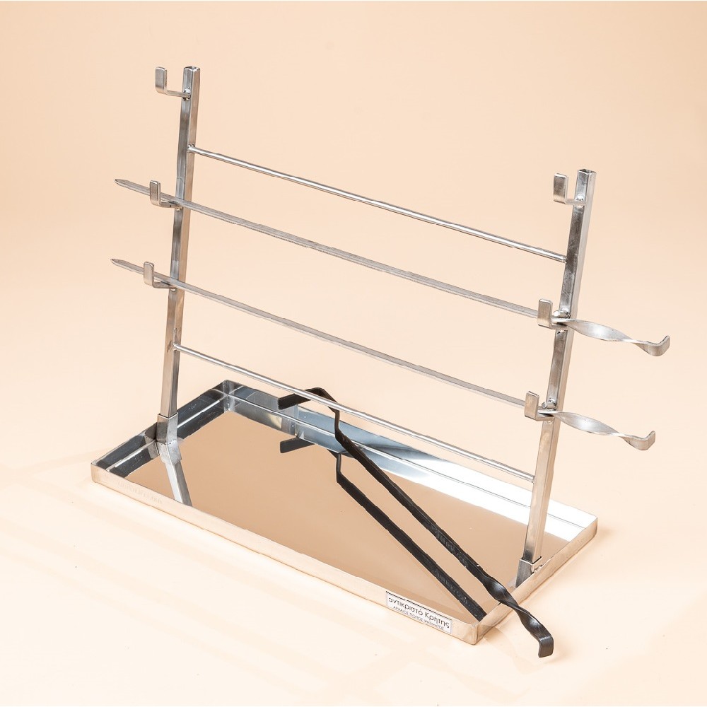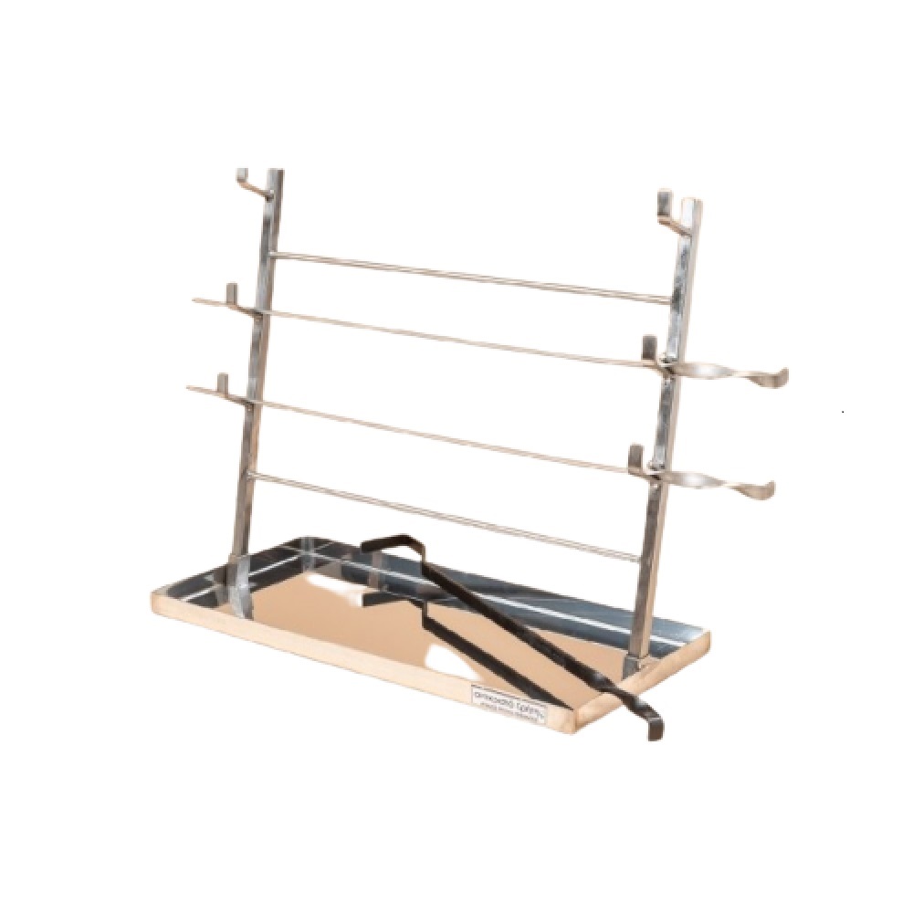 Εξολοκλήρου ανοξείδωτη κατασκευή αποτελούμενη από την αποσπώμενη Αντικριστιέρα 2 θέσεων και 2 ανοξείδωτες σούβλες.