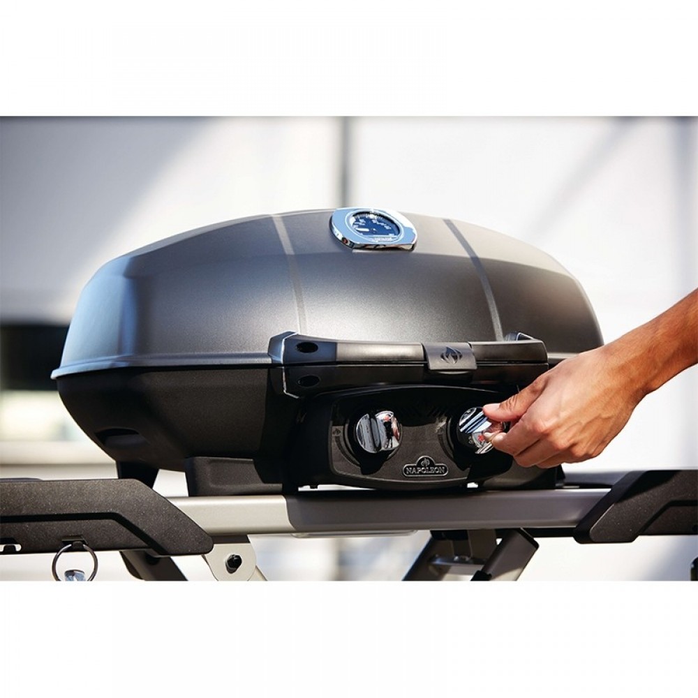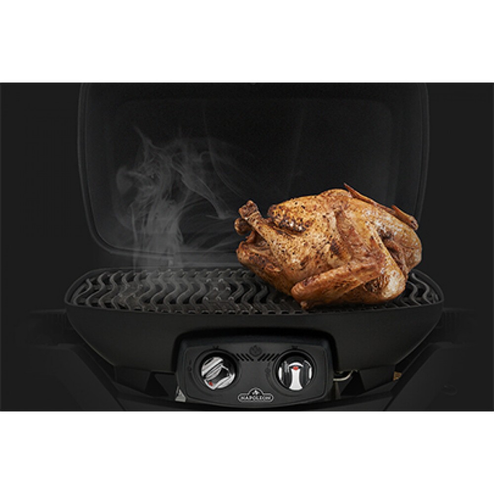 Στην φορητή ψησταριά υγραερίου της Napoleon μπορείτε να ψήσετε μια μεγάλη ποικιλία μεγάλων κομματιών κρέατος όπως ολόκληρο κοτόπουλο ή γαλοπούλα, χάρη στο σχεδιασμό μεγάλου ύψους που διαθέτει το καπάκι της ψησταριάς.