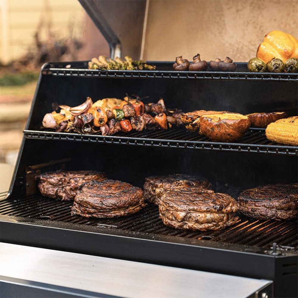 Τα καινοτόμα χαρακτηριστικά της ψησταριάς σας ολοκληρώνονται με το ενσωματωμένο στην ψησταριά θερμόμετρο και το θερμόμετρο κρέατος με ακίδα που συμπεριλαμβάνεται για να έχετε ακόμη μεγαλύτερο έλεγχο της θερμοκρασίας και εγγυημένα τέλεια αποτελέσματα!