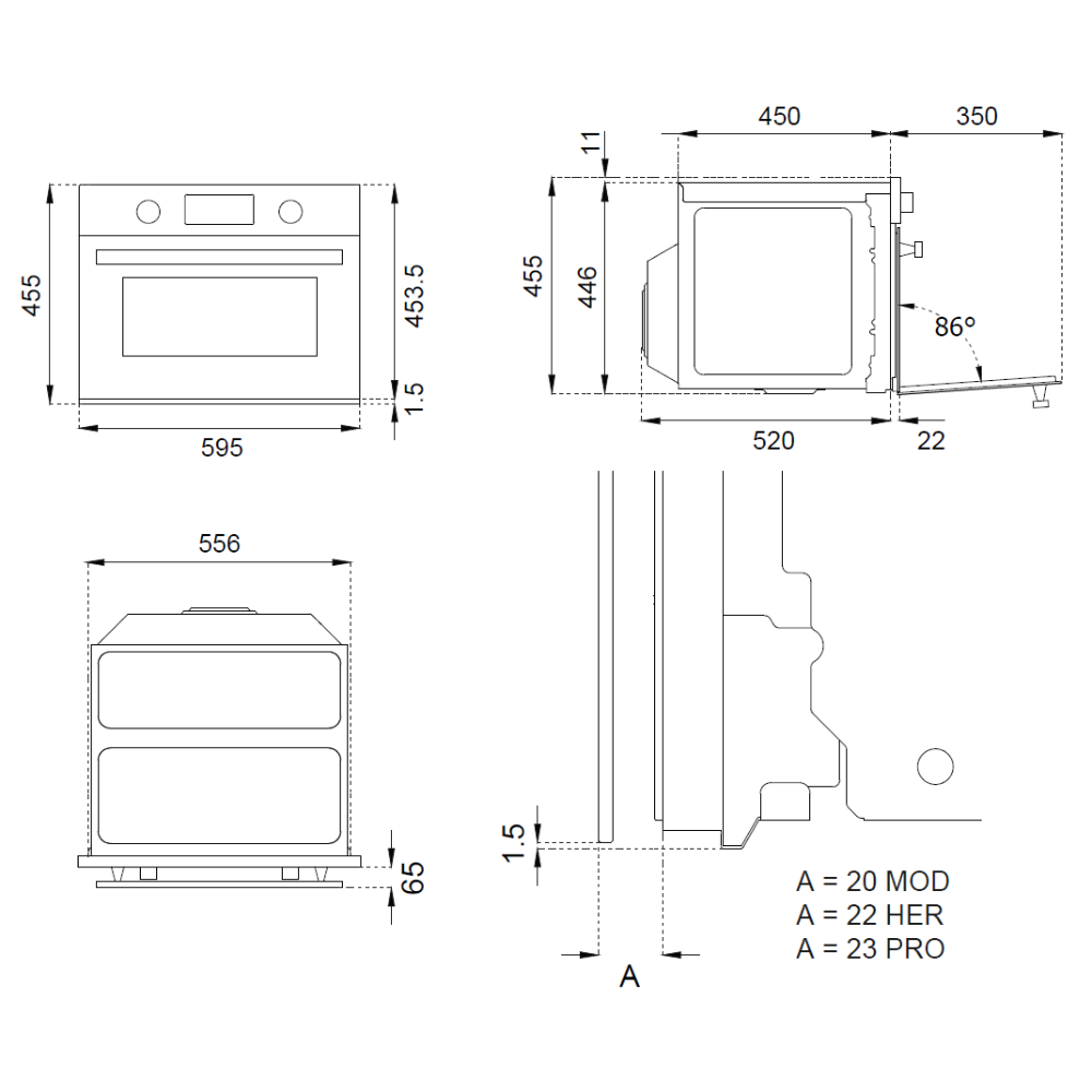 Διαστάσεις εντοιχισμού (ΠxYxB): 56,0x45,0x55,8-56,8 εκ.