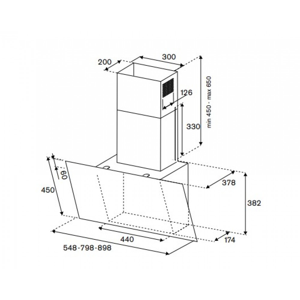 90εκ. επιτοίχιος απορροφητήρας με σύστημα περιμετρική, κάθετης απορρόφησης
