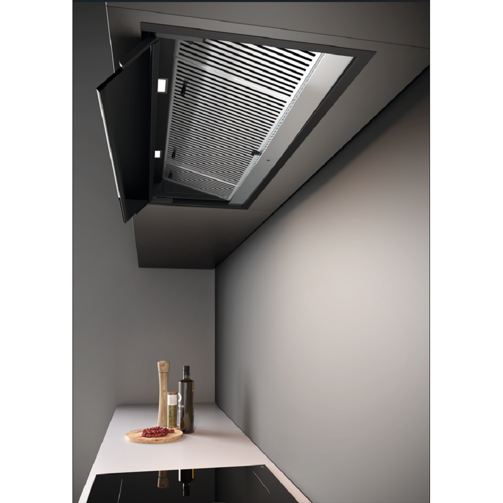 - αυτόματη ενεργοποίηση / απενεργοποίηση με το άνοιγμα/κλείσιμο του κομψού γείσου από μαύρο γυαλί