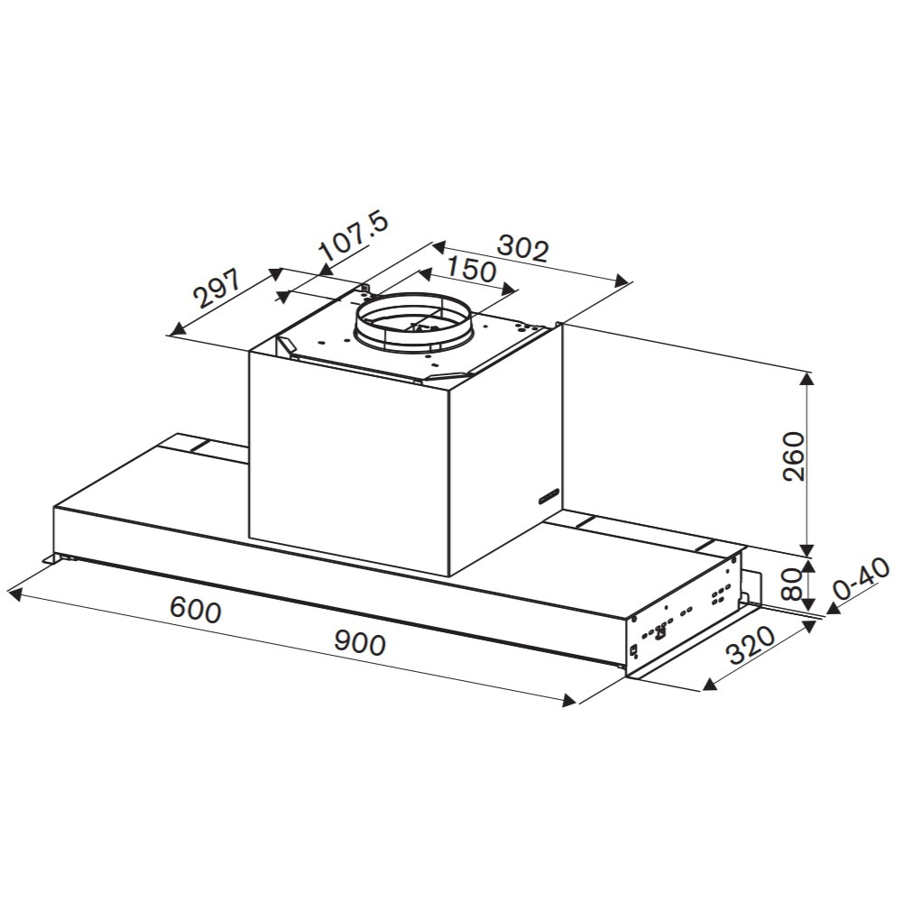 60εκ. εντοιχιζόμενος απορροφητήρας τύπου τζάκι με ανακλινόμενο ενεργό γυάλινο μαύρο γείσο