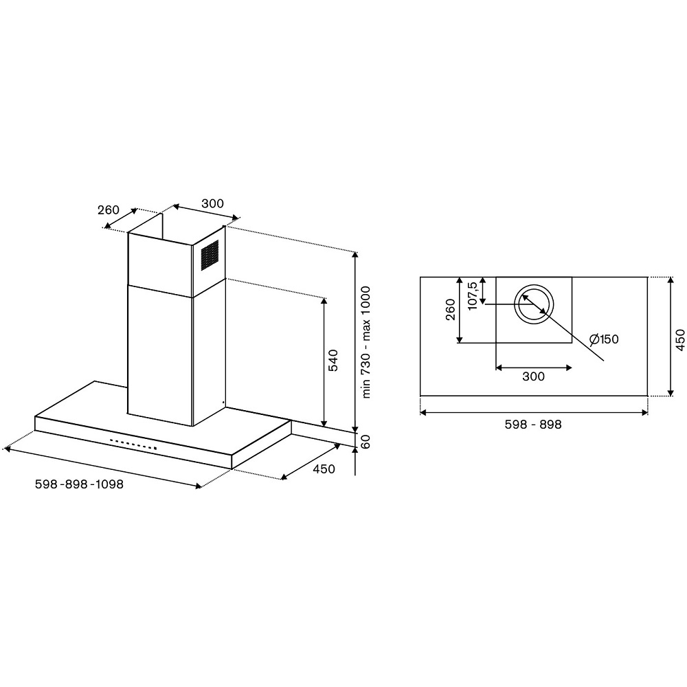 Τοποθέτηση Απορροφητήρα: Επιτοίχιος σε σχέδιο ανάποδου "Τ"