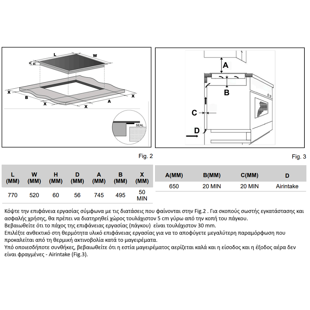 Διαστάσεις κοπής πάγκου (ΠxΒ): 745 x 495 χιλ.