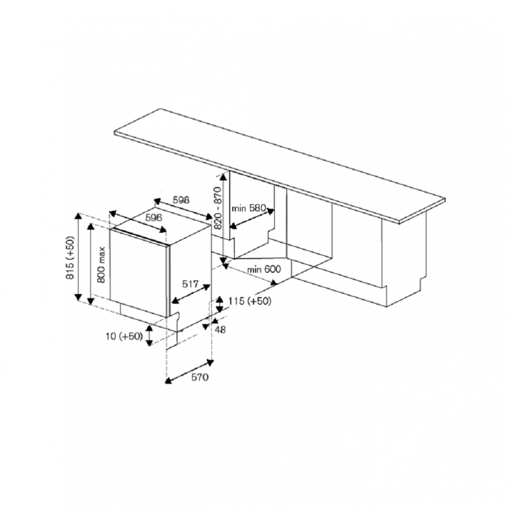 Διαστάσεις εντοιχισμού (ΥxΠxB): 82,0 x 60,0 x 58,0 εκ.