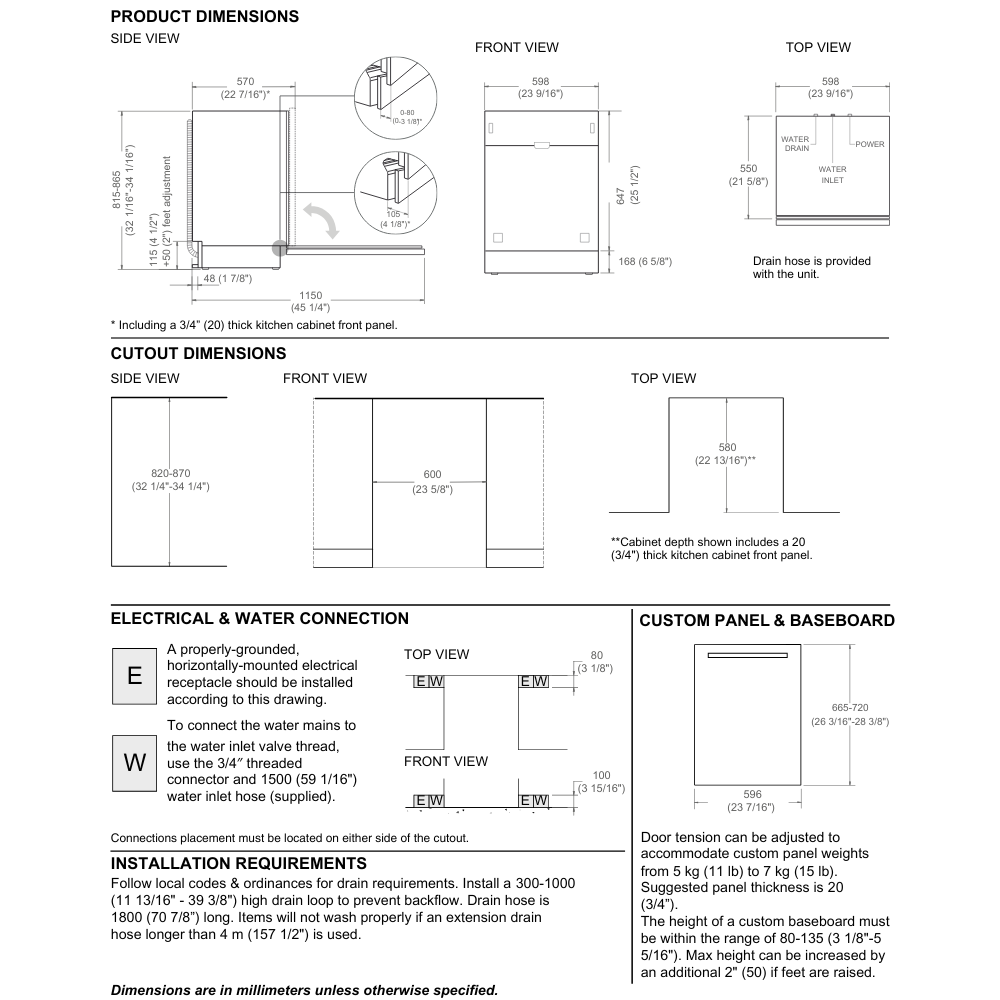 Διαστάσεις εντοιχισμού (ΥxΠxB): 82,0-87,0 x 60,0 x 58,0 εκ. - πάνελ (YxΠ) 66,5-72,0 x 59,6 εκ.