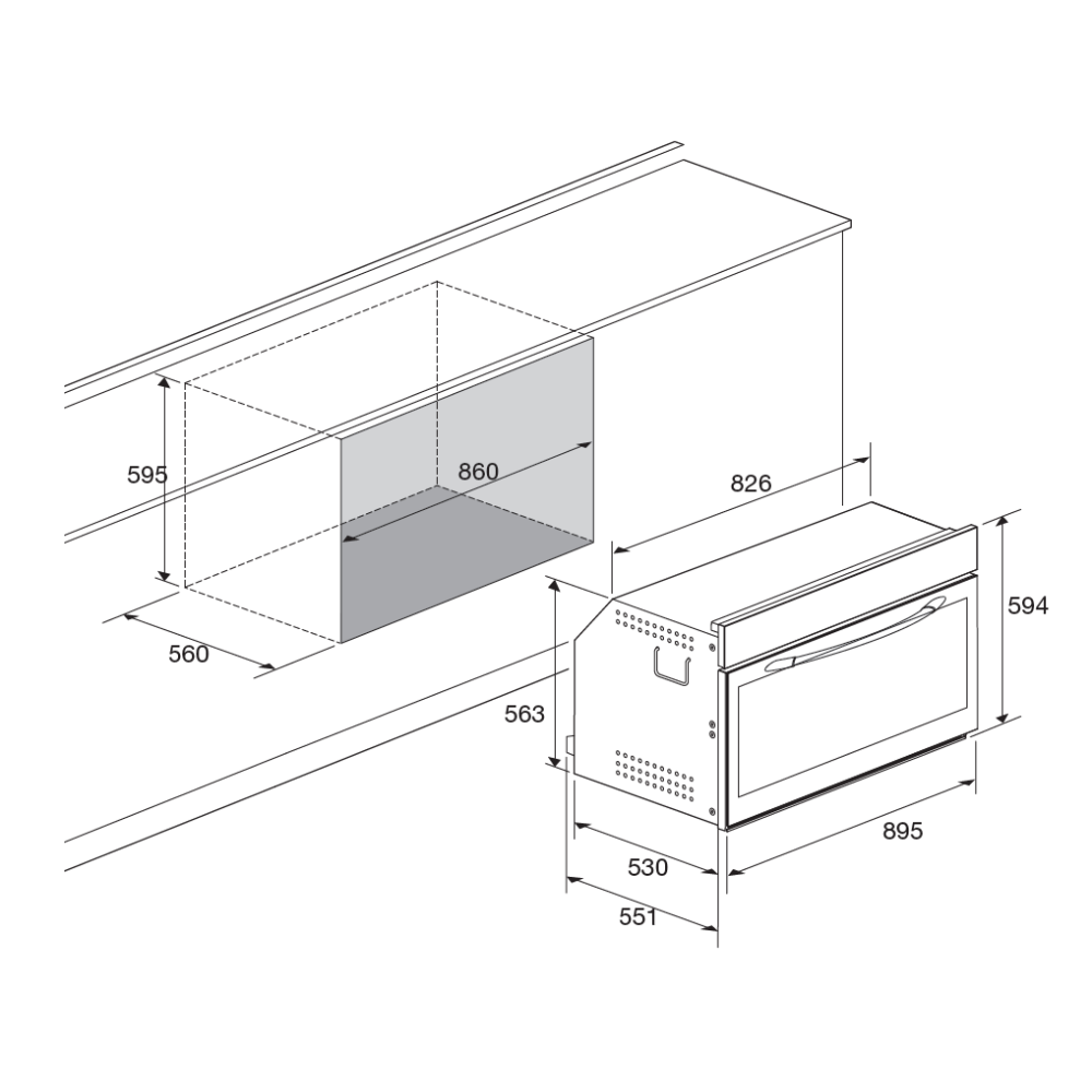 Διαστάσεις εντοιχισμού (ΠxYxB): 86,0 x 59,5 x 56,0 εκ.