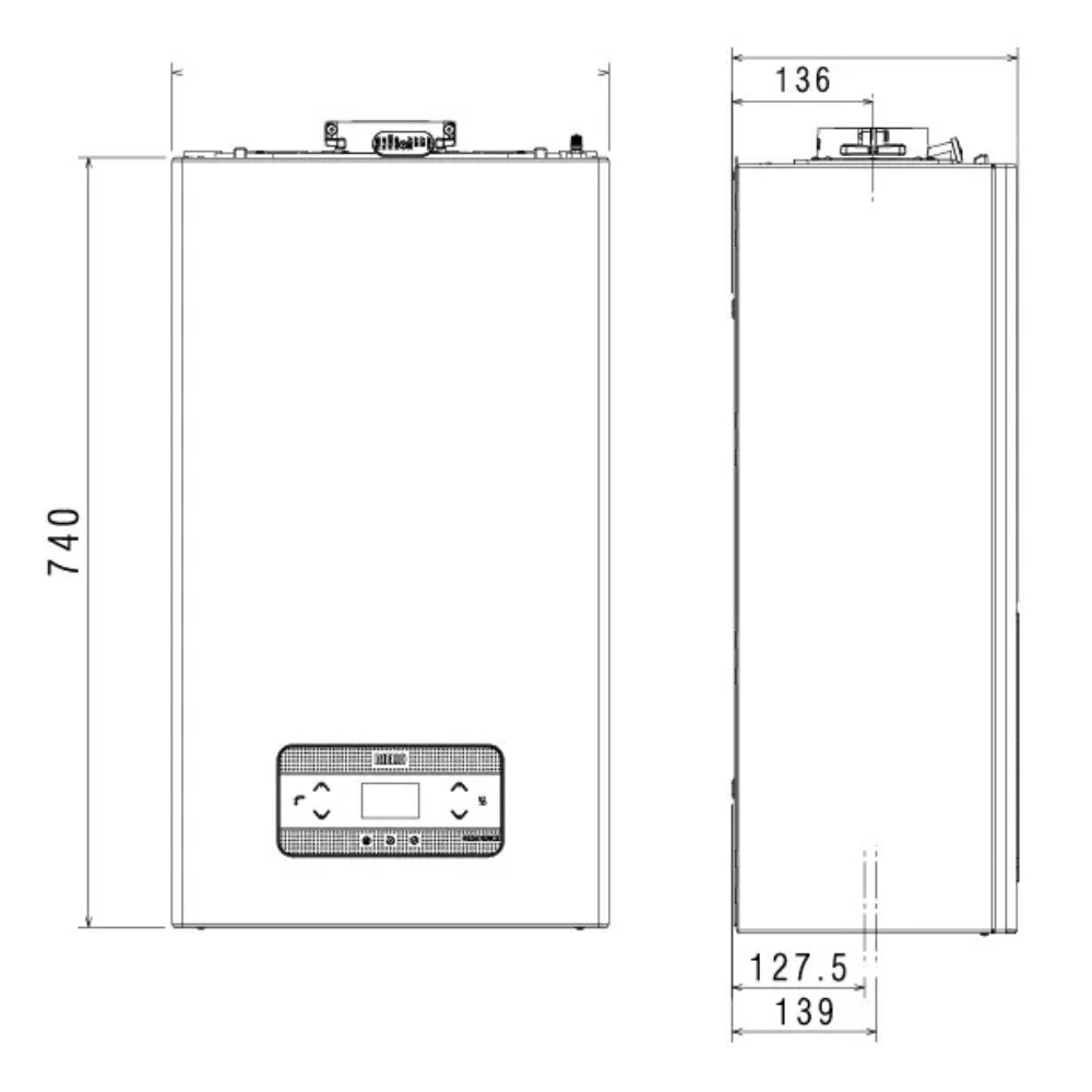Συμπαγής Σχεδιασμός: Οι διαστάσεις του RESIDENCE HM για όλο το εύρος ισχύος είναι κατάλληλες ακόμη και για εγκατάσταση σε ντουλάπη κουζίνας με βάθος μόλις 27,5 εκ. Ο λέβητας μπορεί επίσης να εγκατασταθεί και σε εξωτερικούς χώρους σε μερικώς προστατευμένη τοποθεσία.