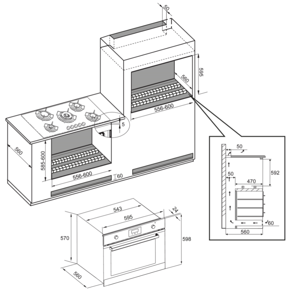 Διαστάσεις εντοιχισμού (ΠxYxB): 56,0-57,0 x 60,0 x 56,0-58,0 εκ.