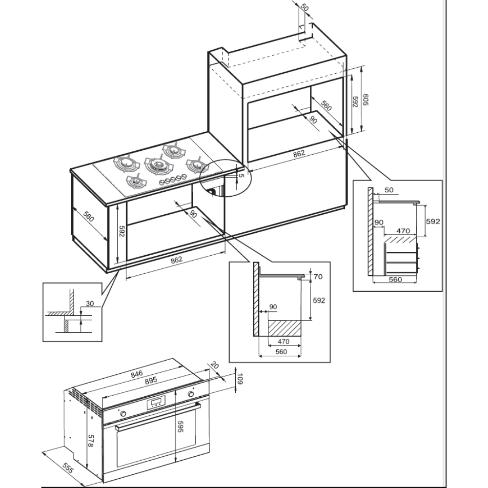 Διαστάσεις εντοιχισμού (ΠxYxB) :86,2 x 59,2 x 56,0-58,0 εκ.