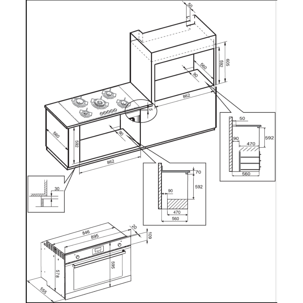 Διαστάσεις εντοιχισμού (ΠxYxB): 86,2 x 59,2 x 56,0-58,0 εκ.