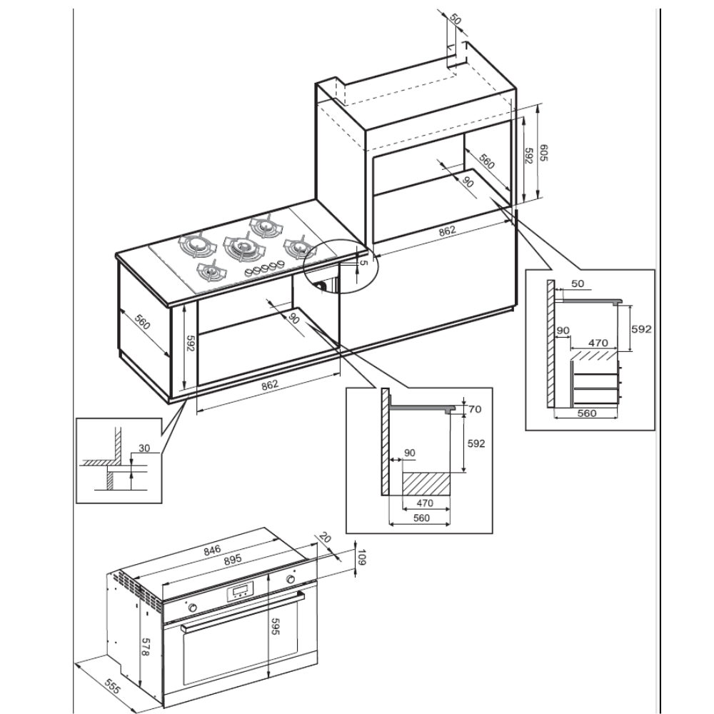 Διαστάσεις εντοιχισμού (ΠxYxB): 86,2 x 59,2 x 56,0-58,0 εκ.