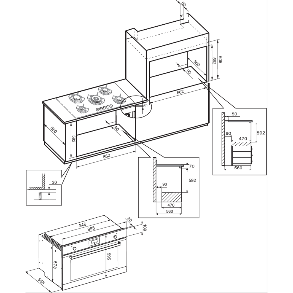 Διαστάσεις εντοιχισμού (ΠxYxB): 86,2 x 59,2 x 56,0-58,0 εκ.