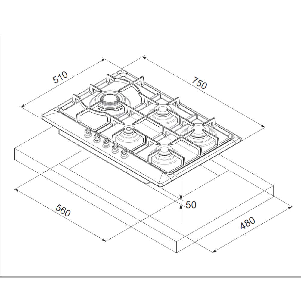 Διαστάσεις κοπής πάγκου (ΠxΒ)560 x 480 χιλ.
