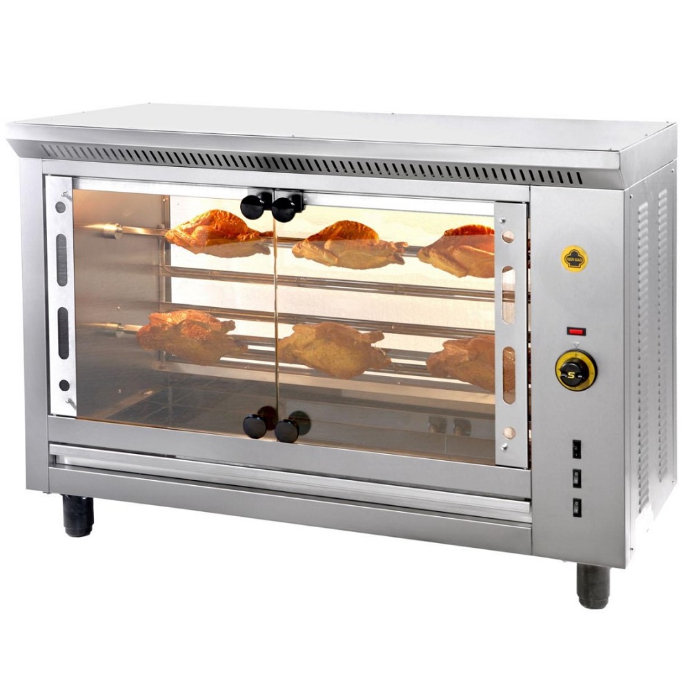 Η κλασική κοτοπουλιέρα με σούβλες. Κορμός από ανοξείδωτο χάλυβα και βιτρίνα εμπρός και πίσω από πυρίμαχο γυαλί. Η καλαίσθητη εμφάνισή της την κάνει ένα ελκυστικό εργαλείο που θα εντυπωσιάσει τον πελάτη σας από την πρώτη ματιά, ενώ το μοναδικό σε γεύση ψήσιμο θα τον ξαναφέρει σε σας. Ο θάλαμος εψήσεως διαθέτει φωτισμό για την εύκολη επιτήρησή του. Τα λίπη συγκεντρώνονται σε συρταρωτό λιποσυλλέκτη στον οποίο συνιστάται να τοποθετείται λίγο νερό για εύκολο καθάρισμα και αποφυγή κάπνας. Οι κοτοπουλιέρες συνιστώνται και για το ψήσιμο όλων των ψητών σούβλας (αρνί, κοκορέτσι, κεφαλάκι, κ.λ.π.) και εγγυώνται γρήγορο, νόστιμο, καθαρό και οικονομικό ψήσιμο. Διατίθενται με δύο και εννέα σούβλες που κάθε μια περιστρέφεται από ανεξάρτητο μοτέρ 4,5 στροφών. Φέρουν το σήμα CE.