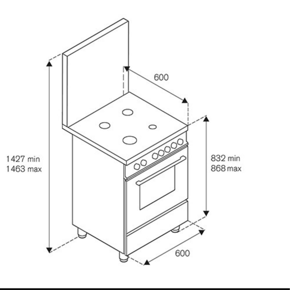 60x60εκ. - 4 εστίες αερίου - φούρνος ηλεκτρικός