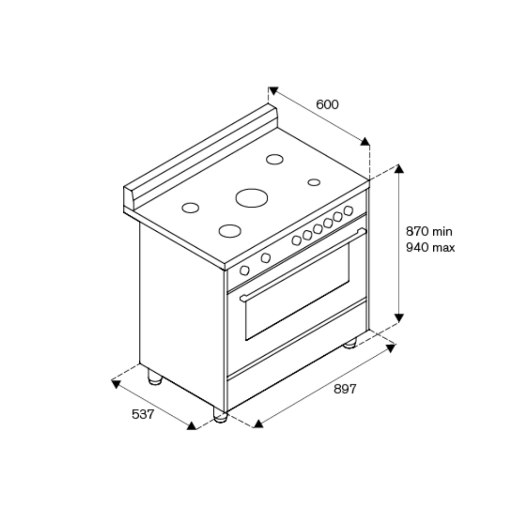 90x60εκ. - 5 εστίες αερίου - φούρνος ηλεκτρικός