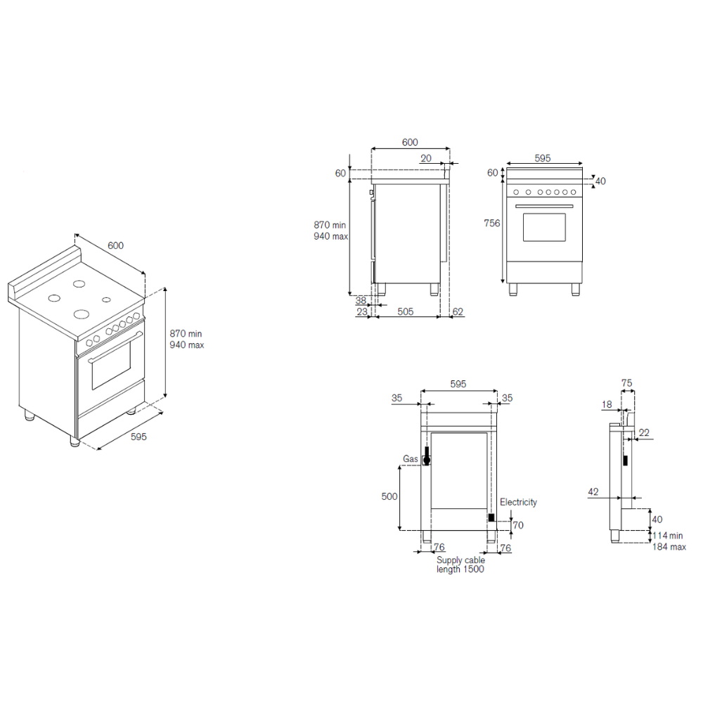 Διαστάσεις συσκευής (ΠxΥxΒ): 59,5 x 87,0-94,0 x 60,0 εκ.