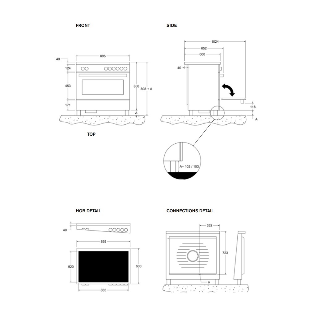 - Τύπος / ισχύς εστίας μπροστά δεξιά: 1 επαγωγική □ 20x21εκ.-2.1kW έως 3.0kW