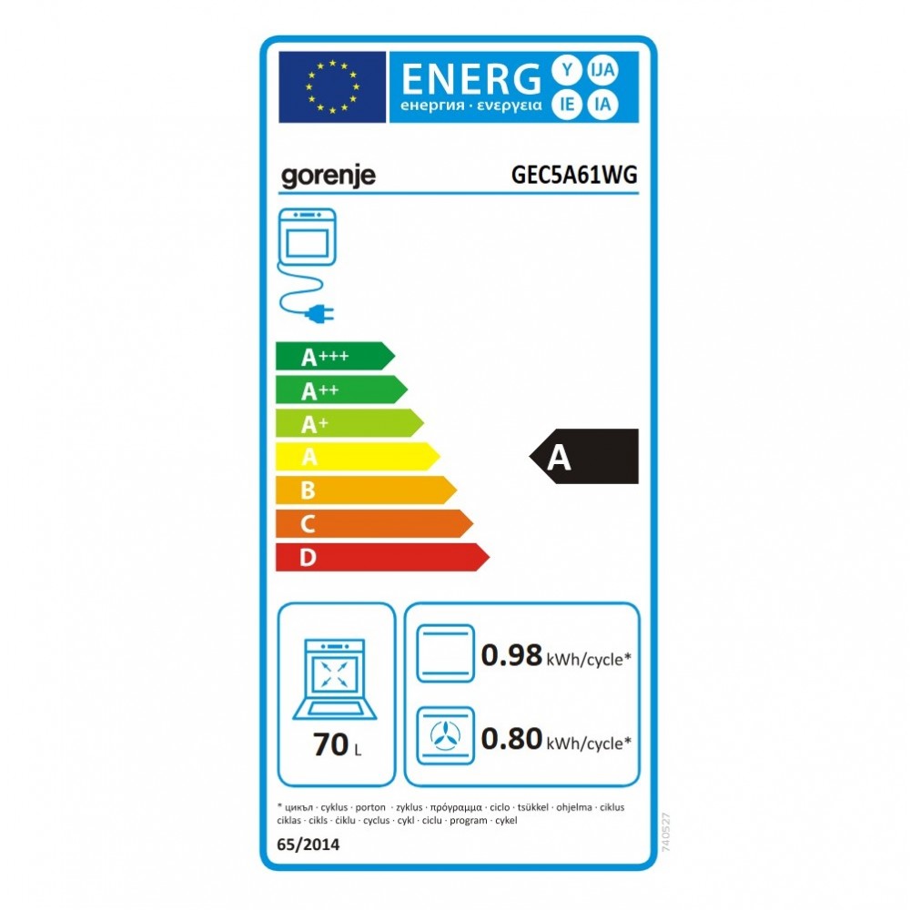 Κατανάλωση ενέργειας φούρνου (συμβατική λειτουργία): 0.98 kWh