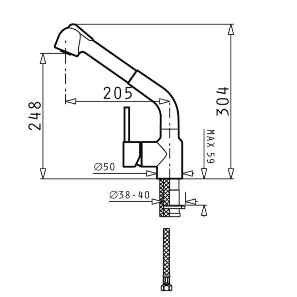 Μπαταρία κουζίνας με εκτεινόμενο ντους Dark Beige Balata Pyramis