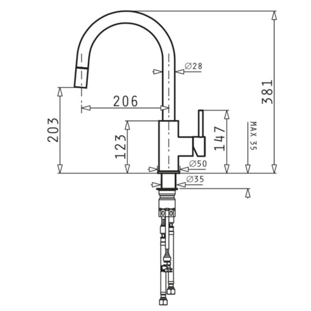 Μπαταρία κουζίνας με εκτεινόμενο ντους Dark Beige Verismo Pyragranite Pyramis