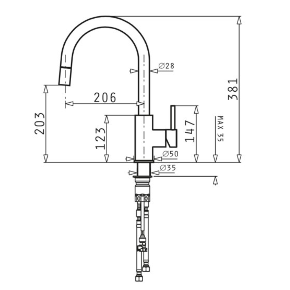 Μπαταρία κουζίνας με εκτεινόμενο ντους Snow Verismo Pyragranite Pyramis
