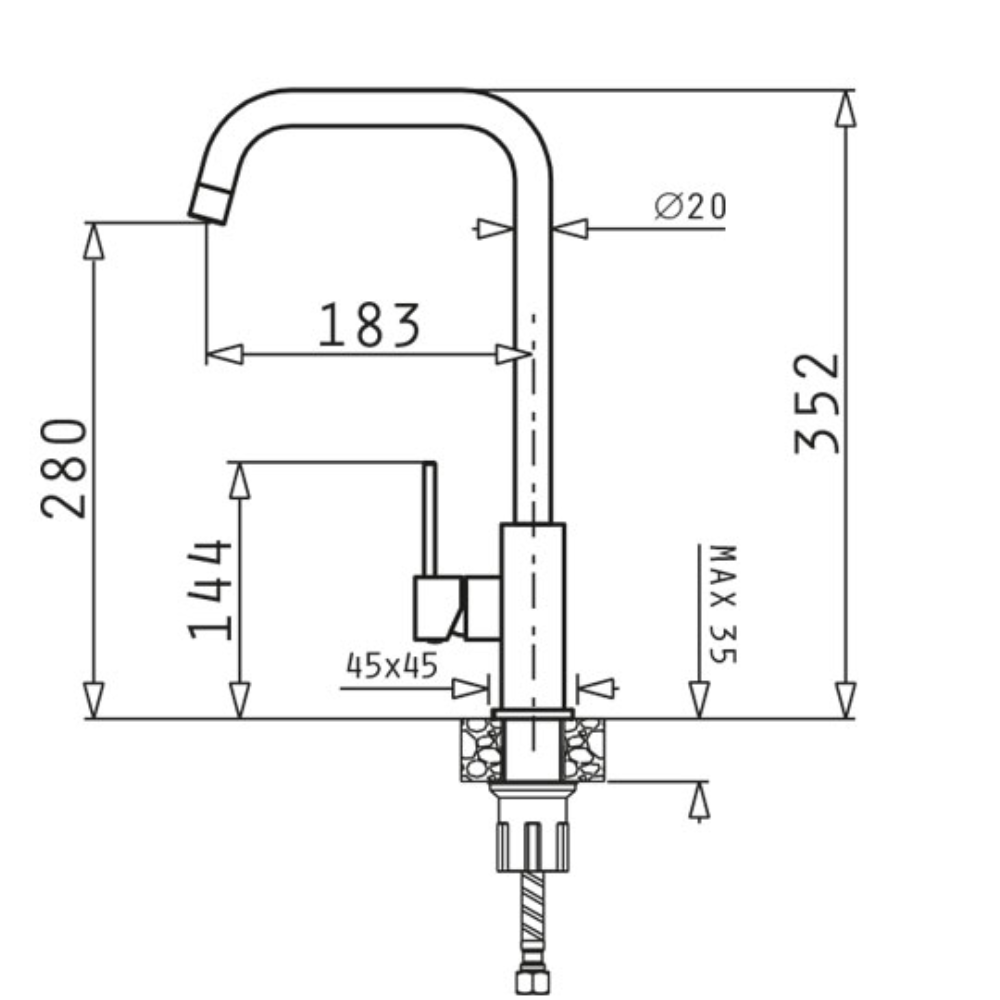 Μπαταρία κουζίνας με εκτεινόμενο ντους Volcano Adelita Pyragranite Pyramis