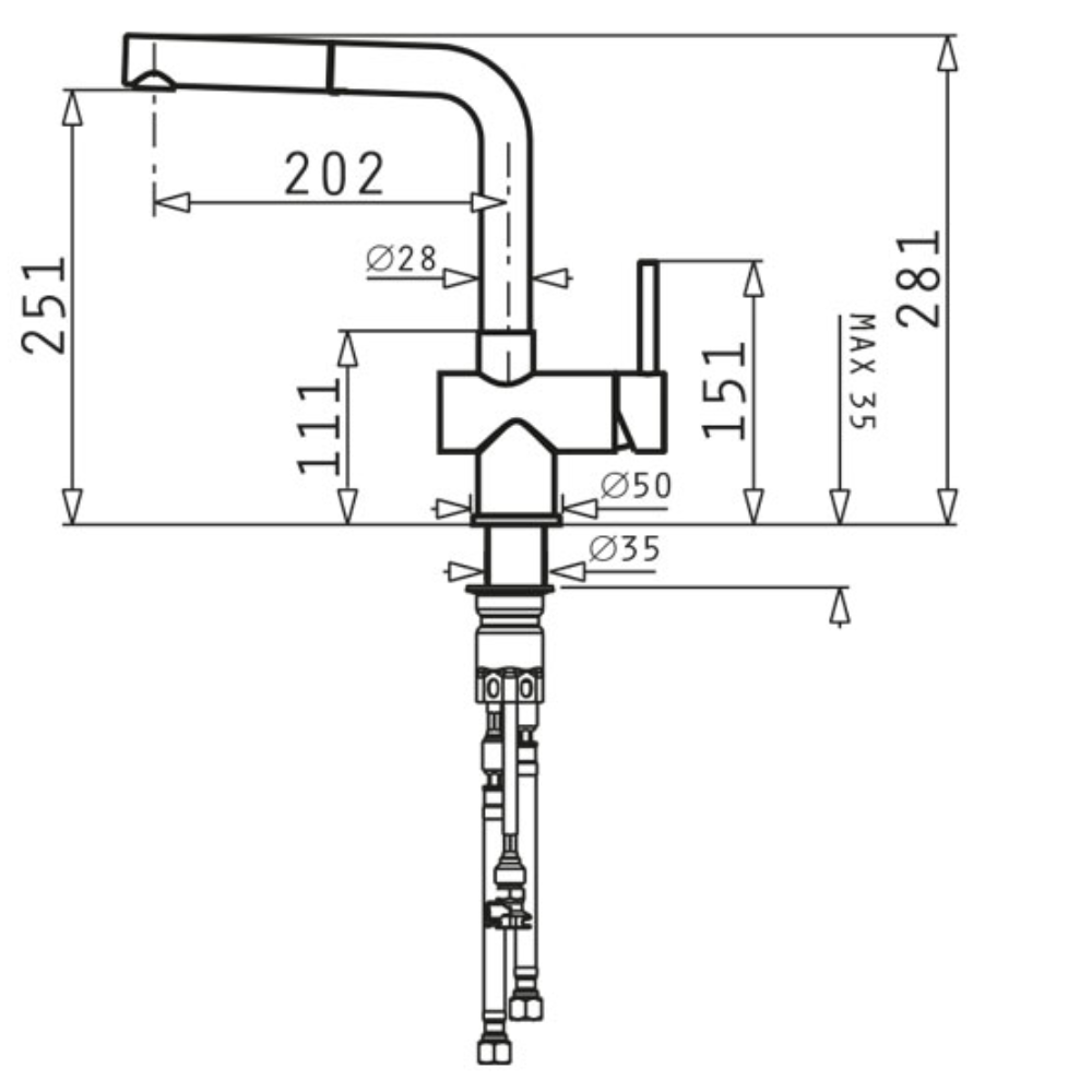 Μπαταρία κουζίνας με εκτεινόμενο ντους Volcano Capriccio Pyragranite Pyramis