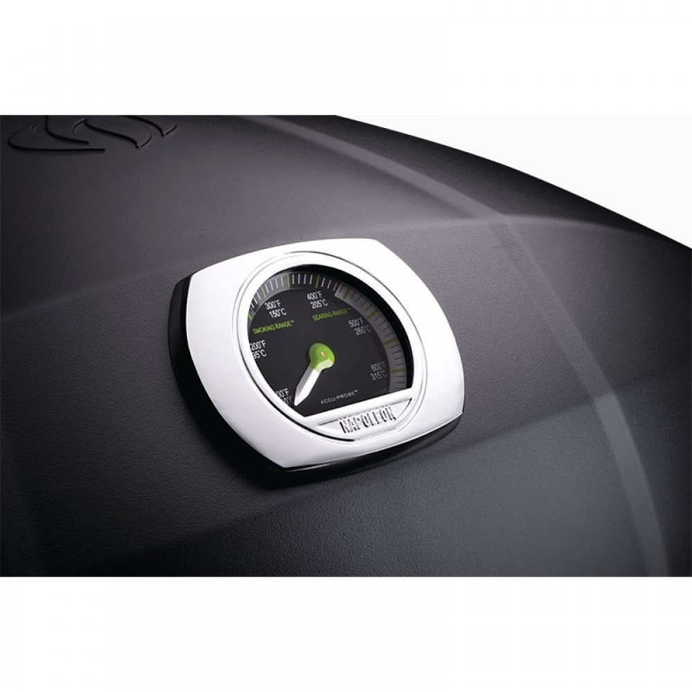 Λάβετε τον απόλυτο έλεγχο της θερμοκρασίας στο μπάρμπεκιου με το θερμόμετρο υψηλής ακρίβειας που βρίσκεται ενσωματωμένο στο καπάκι της Napoleon TravelQ.
