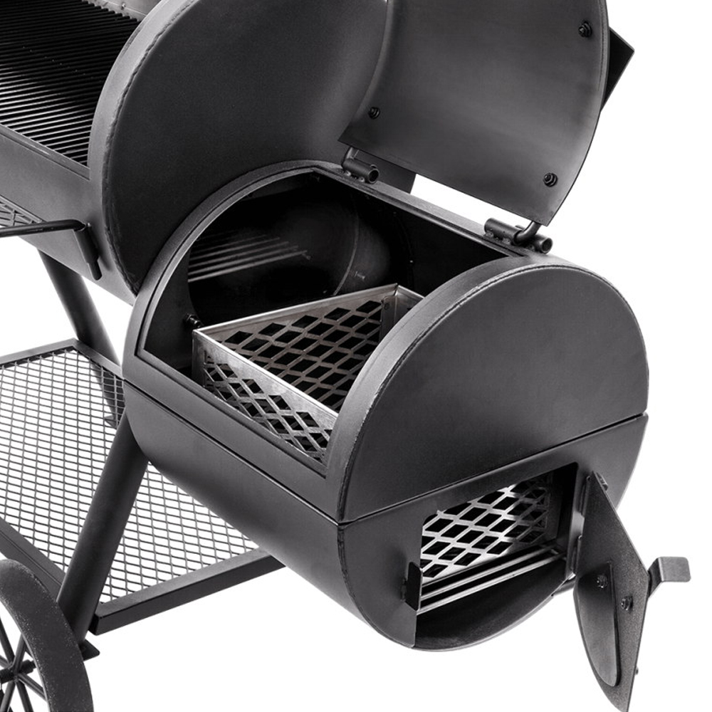 Με το Oklahoma Joe’s® Highland Smoker θα απλωθούν τα αρώματα και η φθαρμένη παλιά αισθητική του μακρινού Νότου. Φτιαγμένο με μαύρο βαρύ σίδερο σε σχήμα βαρελιού και με πολλαπλούς αεραγωγούς για έλεγχο της θερμοκρασίας και του καπνού, το Oklahoma Joe’s® είναι το απόλυτο εργαλείο για το τέλειο αργό έμμεσο ψήσιμο.