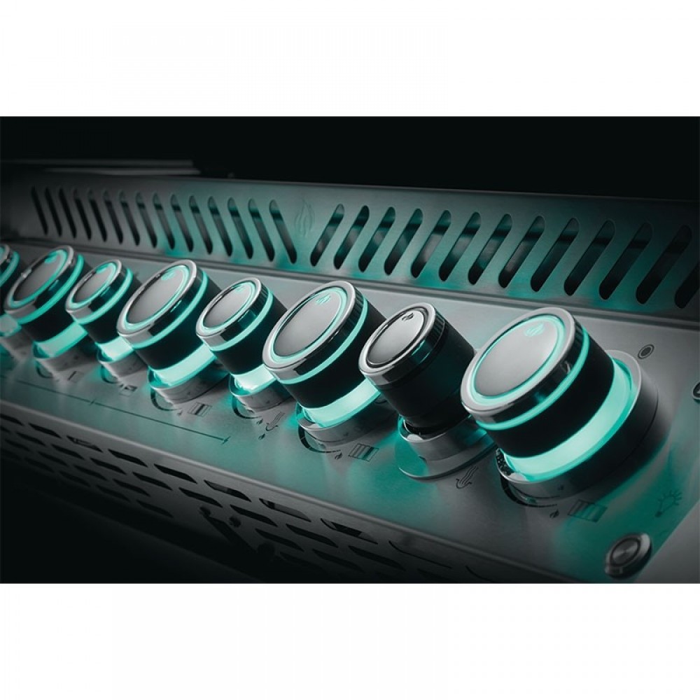 Μην ξεχνάτε πως το ψήσιμο με τον τρόπο της Napoleon δεν σταματάει τη νύχτα: με φωτιζόμενα χειριστήρια ελέγχου NIGHT LIGHT τύπου LED σε μια μεγάλη ποικιλία από χρωματικές επιλογές, η Prestige PRO 665 κάνει το ψήσιμο ακόμα πιο εντυπωσιακό αλλά και ιδιαίτερα ασφαλές, καθώς τα χειριστήρια ελέγχου έχουν τη δυνατότητα να φωτίζονται με κόκκινο χρώμα σε περίπτωση που έχετε την παροχή υγραερίου ανοιχτή, ως ένα ακόμη χαρακτηριστικό ασφαλείας.