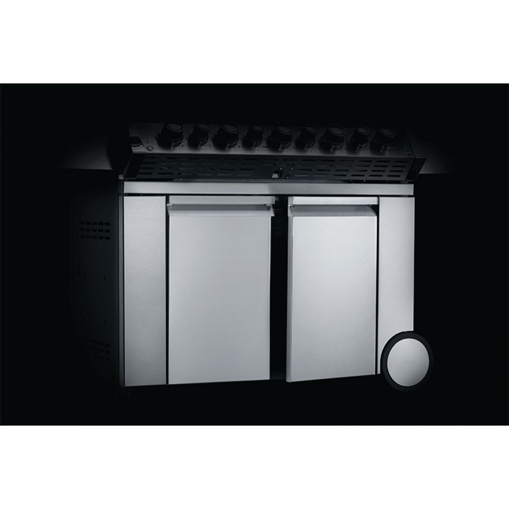 - Ο αποθηκευτικός χώρος περιλαμβάνει συρτάρια, φωτισμό, γάντζους για τα αξεσουάρ του μπάρμπεκιου και ενσωματωμένο ανοιχτήρι. .