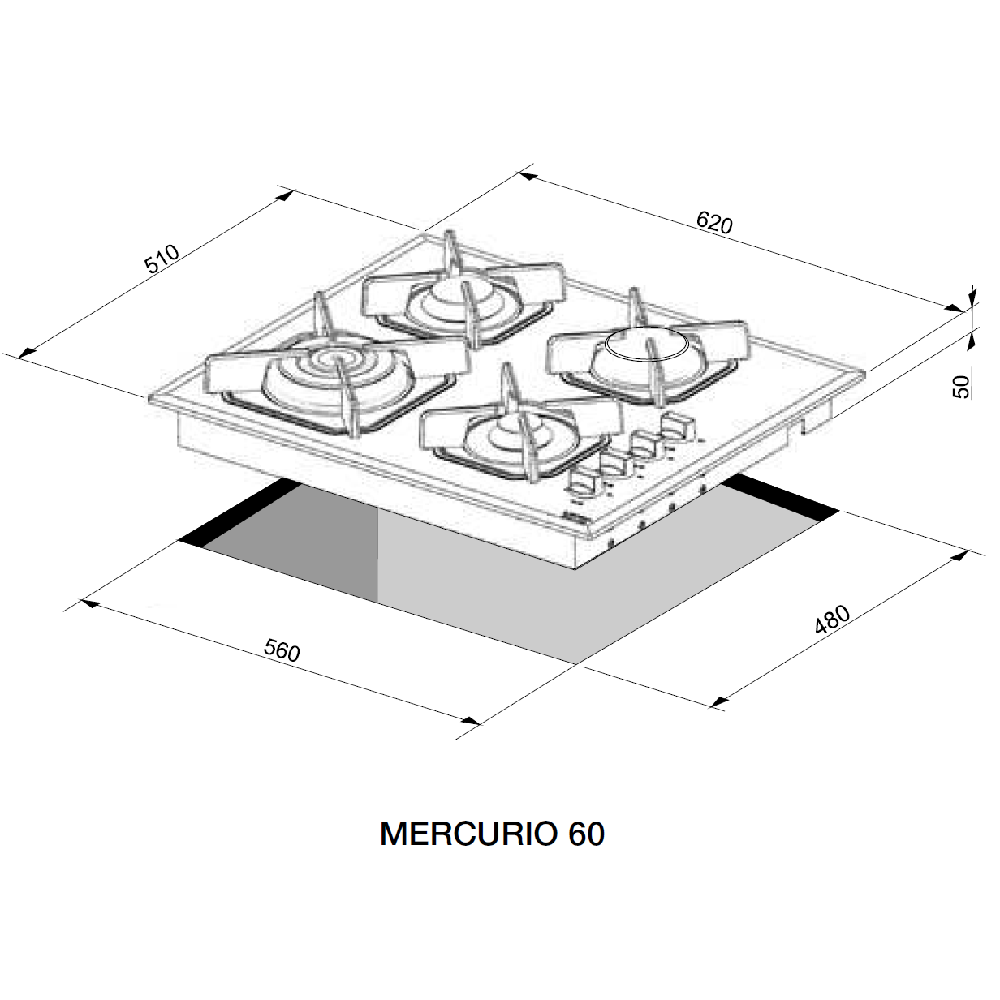 62εκ. – εστία αερίου με 4 καυστήρες