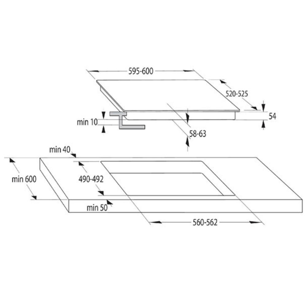 Τύπος βάσης εστιών: Εστία επαγωγική χωρίς πλαίσιο