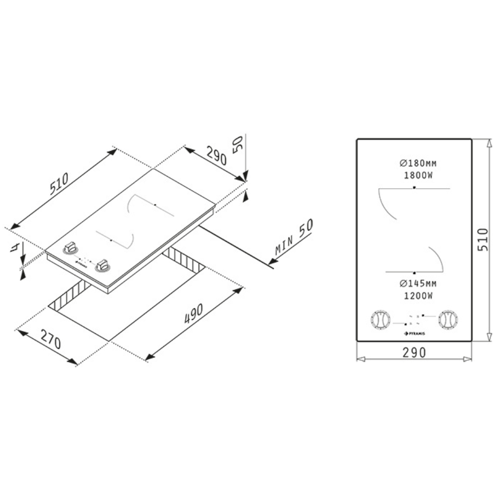 Κεραμική εστία με κομβία χωρίς πλαίσιο