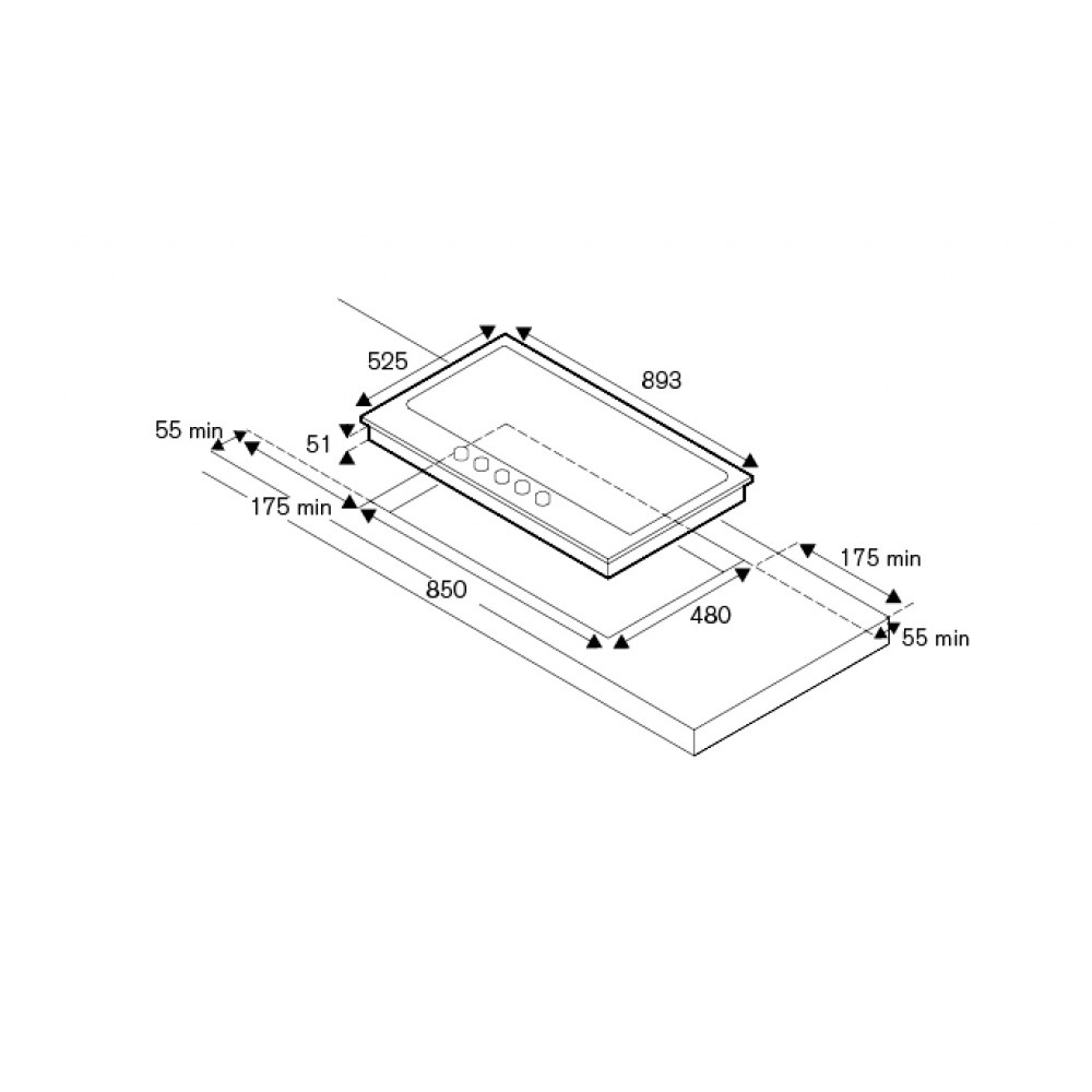 Διαστάσεις κοπής πάγκου (ΠxΒ): 850 x 480 χιλ.