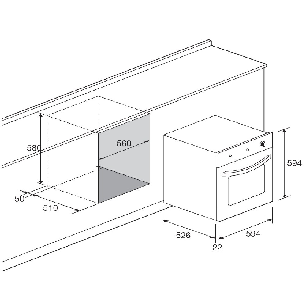 Διαστάσεις εντοιχισμού (ΠxYxB): 56,0-57,0 x 58,0-58,5 x 56,0-58,0 εκ.