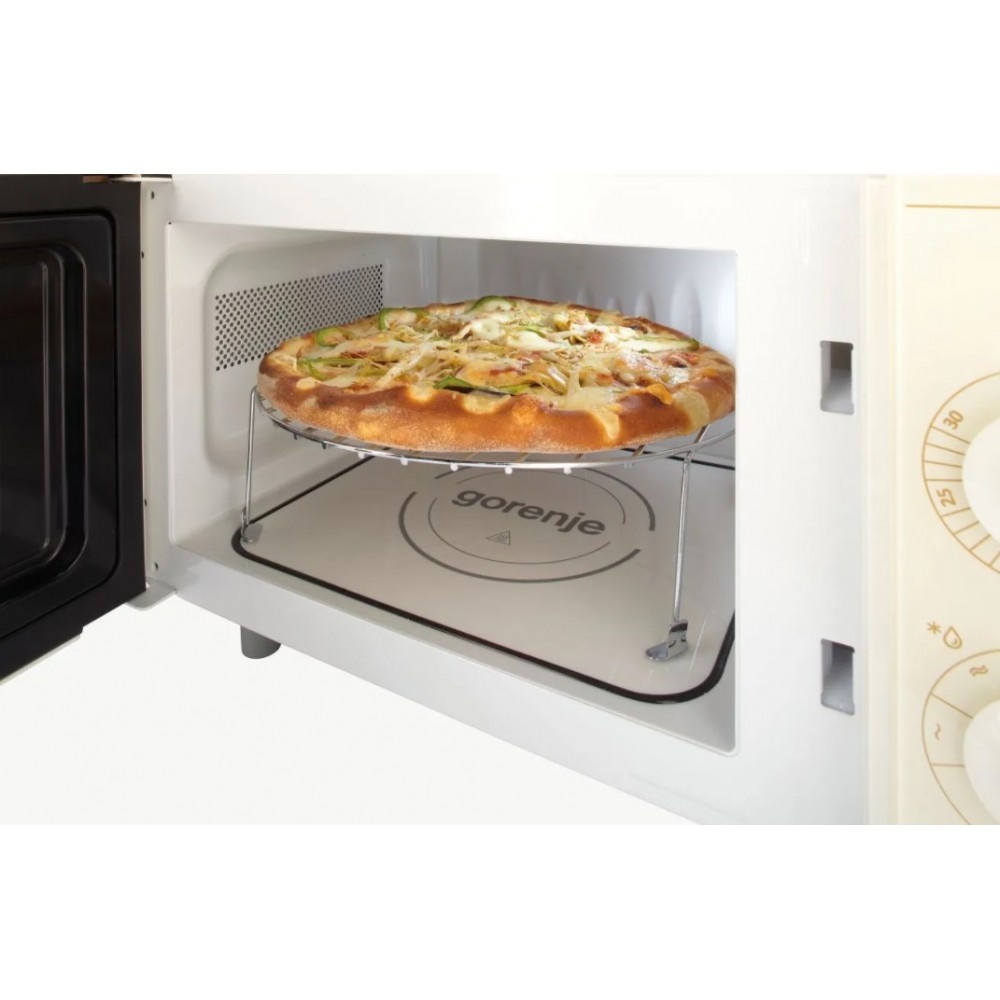 Ο φούρνος μικροκυμάτων της Gorenje με ισχύ 700 watt, έχει χωρητικότητα 20 λίτρα και μπορεί να καλύψει τις ανάγκες μιας μικρής οικογένειας (έως 3 άτομα). Επιπλέον διαθέτει λειτουργία grill για να ψήσετε κρέας, ψάρι ή λαχανικά, όπως θα ψήνατε σε ένα ηλεκτρικό φουρνάκι. Οι διαστάσεις του φούρνου είναι 45cm πλάτος, 36.5cm βάθος και 28.5cm ύψος.