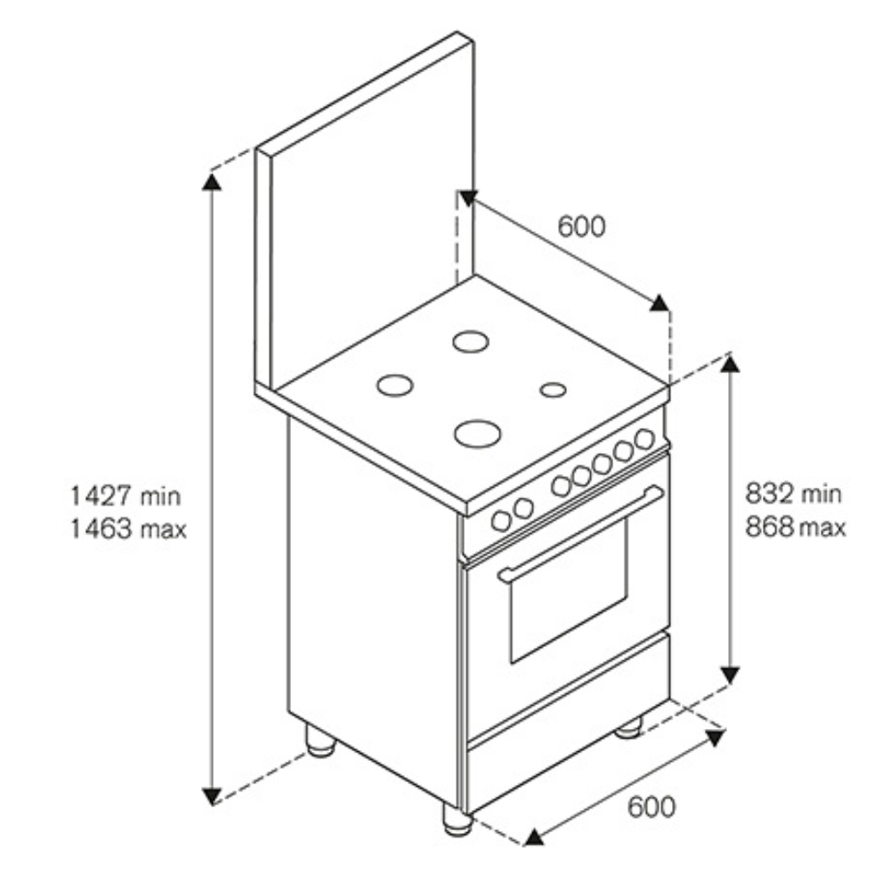 60x60εκ. - 4 εστίες αερίου - φούρνος ηλεκτρικός