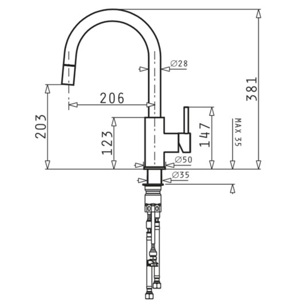 Μπαταρία κουζίνας με εκτεινόμενο ντους Volcano Verismo Pyragranite Pyramis