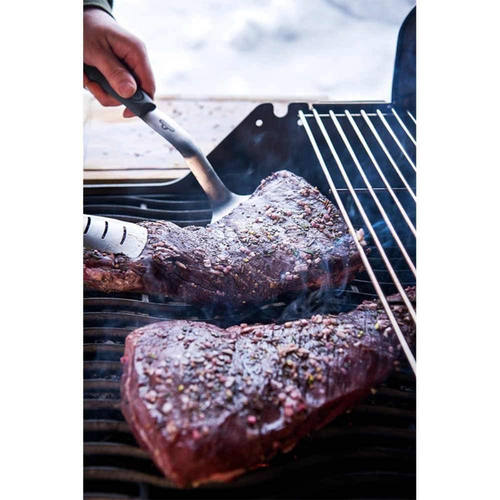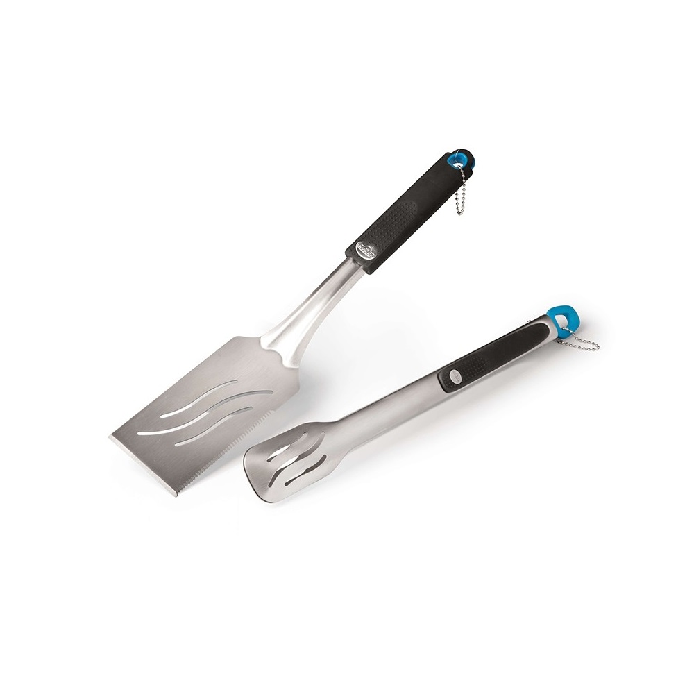 Το ανοξείδωτο ΣΕΤ αξεσουάρ – τσιμπίδα και σπάτουλα της Napoleon περιλαμβάνει τα πιο απαραίτητα αξεσουάρ στο μπάρμπεκιου, για κάθε ψήστη που θέλει να κάνει τα πάντα με ένα και μόνο σετ εργαλείων. Χρησιμοποιήστε την ανοξείδωτη τσιμπίδα και σπάτουλα της Napoleon για να γυρίσετε παϊδάκια, να μετακινήσετε μεγαλύτερα ή μικρότερα κομμάτια φαγητού μέσα στο μπάρμπεκιου, ή ακόμα και να να αναδιοργανώσετε τα αναμμένα κάρβουνα στο επιθυμητό σημείο κατά τη διάρκεια του ψησίματος.
