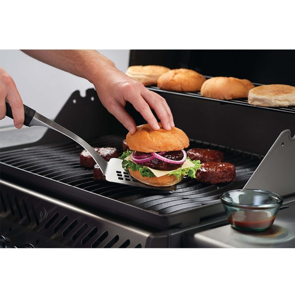 Τα ανοξείδωτα premium εργαλεία για το μπάρμπεκιου τσιμπίδα – σπάτουλα – πινέλο σιλικόνης της Napoleon διαθέτουν εργονομική και αντιολισθητική λαβή μεγάλου μήκους ώστε να κρατάει τα χέρια σας ασφαλή, μακριά από τη θερμότητα της φωτιάς.