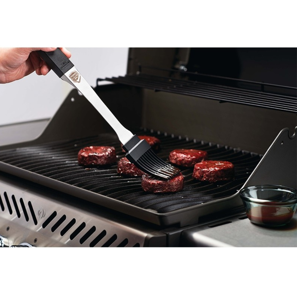 Αξιοποιήστε το ανοξείδωτο πινέλο επάλειψης της Napoleon, το οποίο δεν είναι ένα απλό πινέλο που θα συναντήσετε σε κάθε κουζίνα ή εξωτερικό χώρο μπάρμπεκιου. Διαθέτει ανθεκτικές τρίχες σιλικόνης σε ιδανικό πάχος για να επαλείφεται σωστά και ομοιόμορφα η μαρινάδα, η σως ή το dressing, και σε μαύρο χρώμα ώστε να μην παραμένουν χρωματισμένες μετά τη χρήση και τον καθαρισμό.