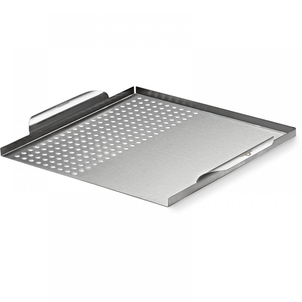Το πολυλειτουργικό ταψί από ανοξείδωτο ατσάλι, διαθέτει δύο διαφορετικές πλευρές, η διάτρητη πλευρά είναι ιδανική για ψητά λαχανικά, ενώ η επίπεδη πλευρά είναι ιδανική για το ψήσιμο ευαίσθητων τροφίμων όπως ψάρια και χτένια, ή τοποθέτηση μιας ξύλινης σανίδας καπνίσματος (δεν περιλαμβάνεται), ώστε να έχετε αυτή την υπέροχη καπνιστή γεύση χωρίς να ανησυχείτε ότι η σανίδα θα καεί.