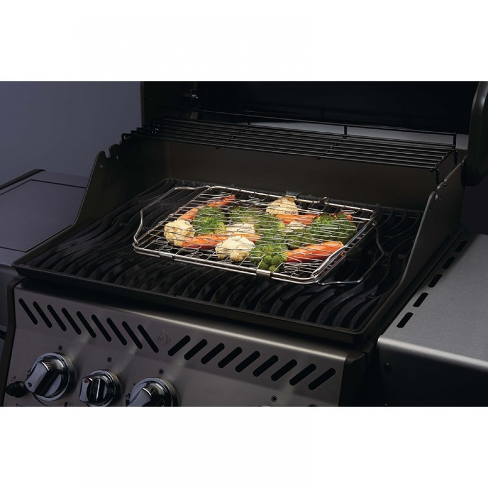 Τα επαναχρησιμοποιούμενα σουβλάκια από ανοξείδωτο ατσάλι σάς επιτρέπουν να δημιουργήσετε προσαρμοσμένα κεμπάπ με τα λαχανικά, θαλασσινά ή κρεατικά της επιθυμίας σας. Σηκώστε τα ευαίσθητα τρόφιμα, όπως τα ψάρια, για να αποφύγετε να κολλήσουν επάνω στη σχάρα, με το εύκαμπτο καλάθι ψησίματος. Ιδανικό για το ασφαλές κράτημα λαχανικών, θαλασσινών και υπέροχο για τη δημιουργία ψητών σάντουιτς. Όλα τα μέρη του υγιεινού κιτ ψησίματος της Napoleon καθαρίζονται πολύ εύκολα και είναι ασφαλή για πλύσιμο στο πλυντήριο πιάτων.