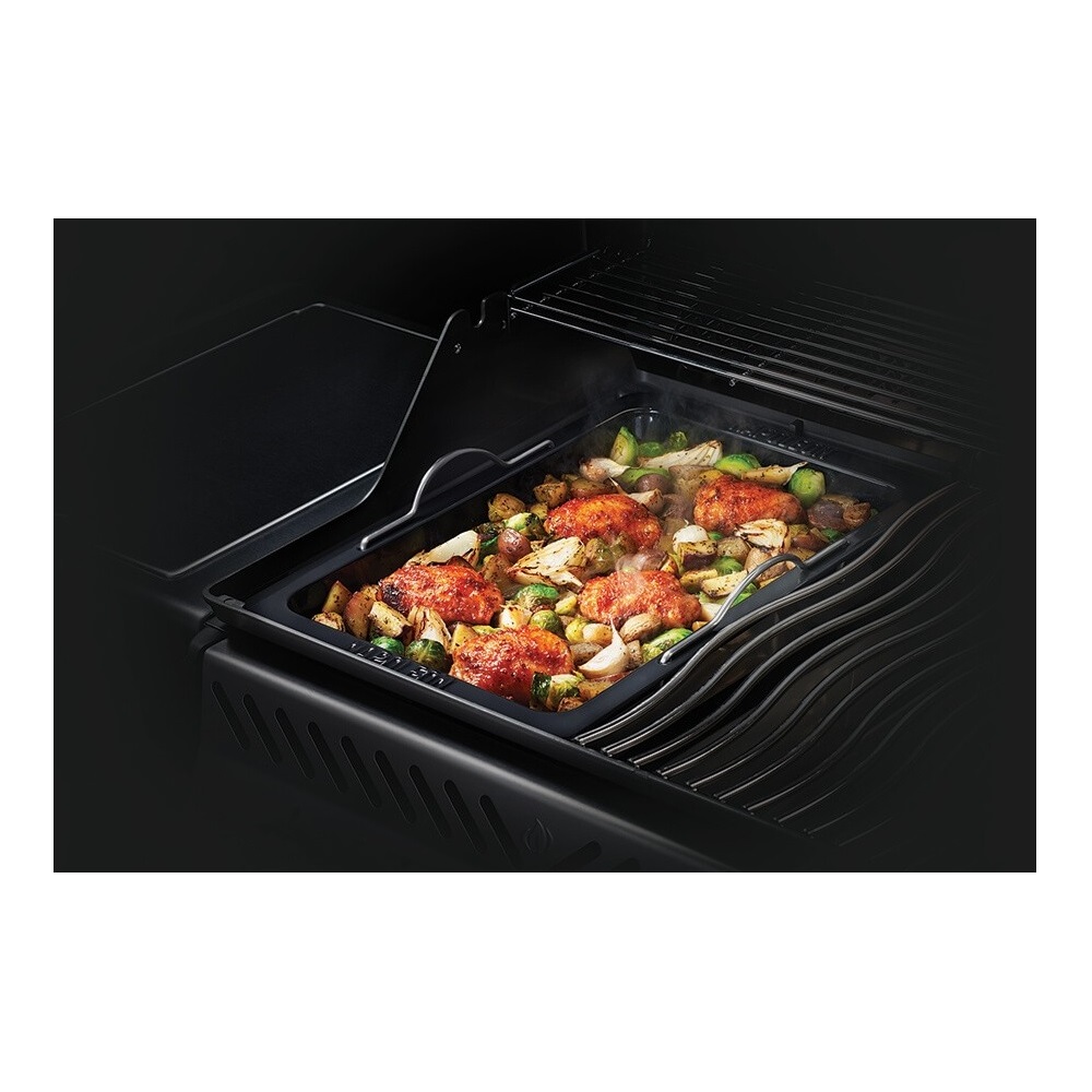 Με το ταψί ψησίματος Napoleon θα καταργήσετε την χρήση του ηλεκτρικού σας φούρνου. Τώρα μπορείτε να μαγειρεύετε τα αγαπημένα σας γεύματα στο μπάρμπεκιου γρήγορα, νόστιμα και πιο οικονομικά. Απλά αφαιρέστε την σχάρα ψησίματος και τοποθετήστε, εύκολα χάρη στις εργονομικές χειρολαβές drop-in, το ειδικά σχεδιασμένο ταψί. Όταν τελειώσετε το ψήσιμο χρησιμοποιήστε ένα θερμοανθεκτικό γάντι για να το αφαιρέσετε απο το μπάρμπεκιου.Μπορείτε να σερβίρετε απευθείας! Ιδανικό για έμμεσο ψήσιμο, μαγειρευτά φαγητά και πολλά άλλα. Το φινίρισμα απο επισμάλτωση πορσελάνης και η λεία επιφάνειά του κάνουν τον καθαρισμό του εύκολο ενώ μπορείτε, άφοβα, να το πλύνετε και στο πλυντήριο πιάτων.
